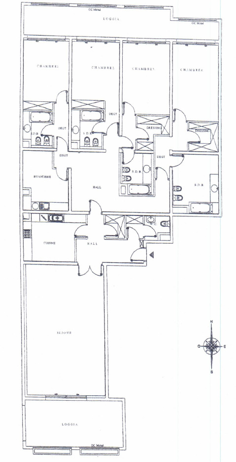 4 bedrooms with their bathroom and dressing room, opening onto the terrace