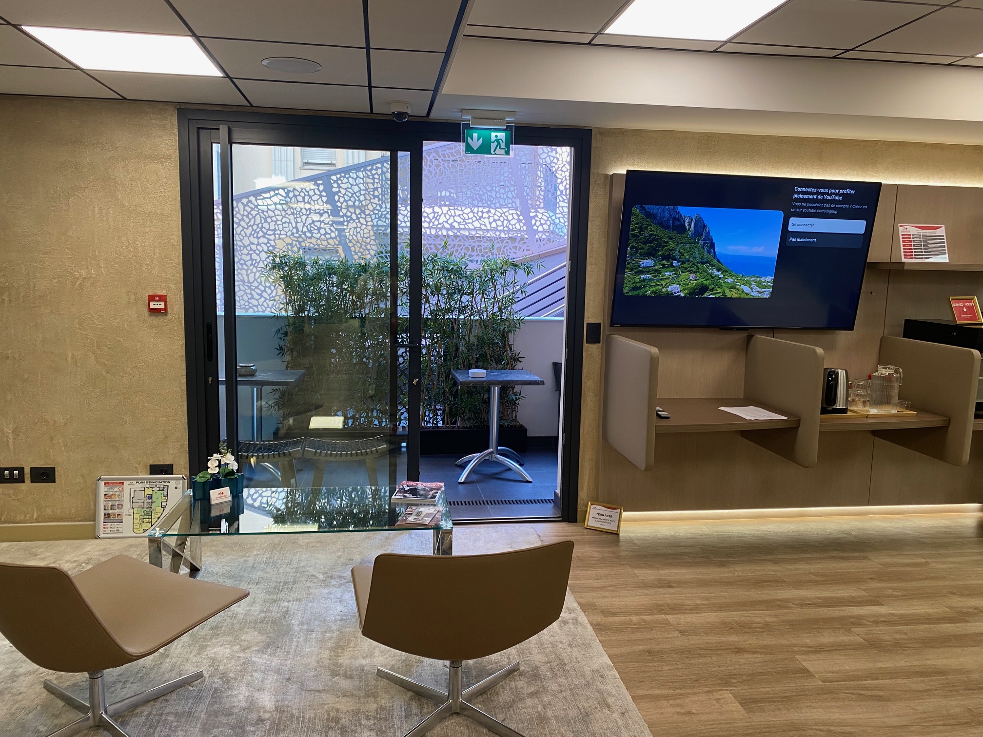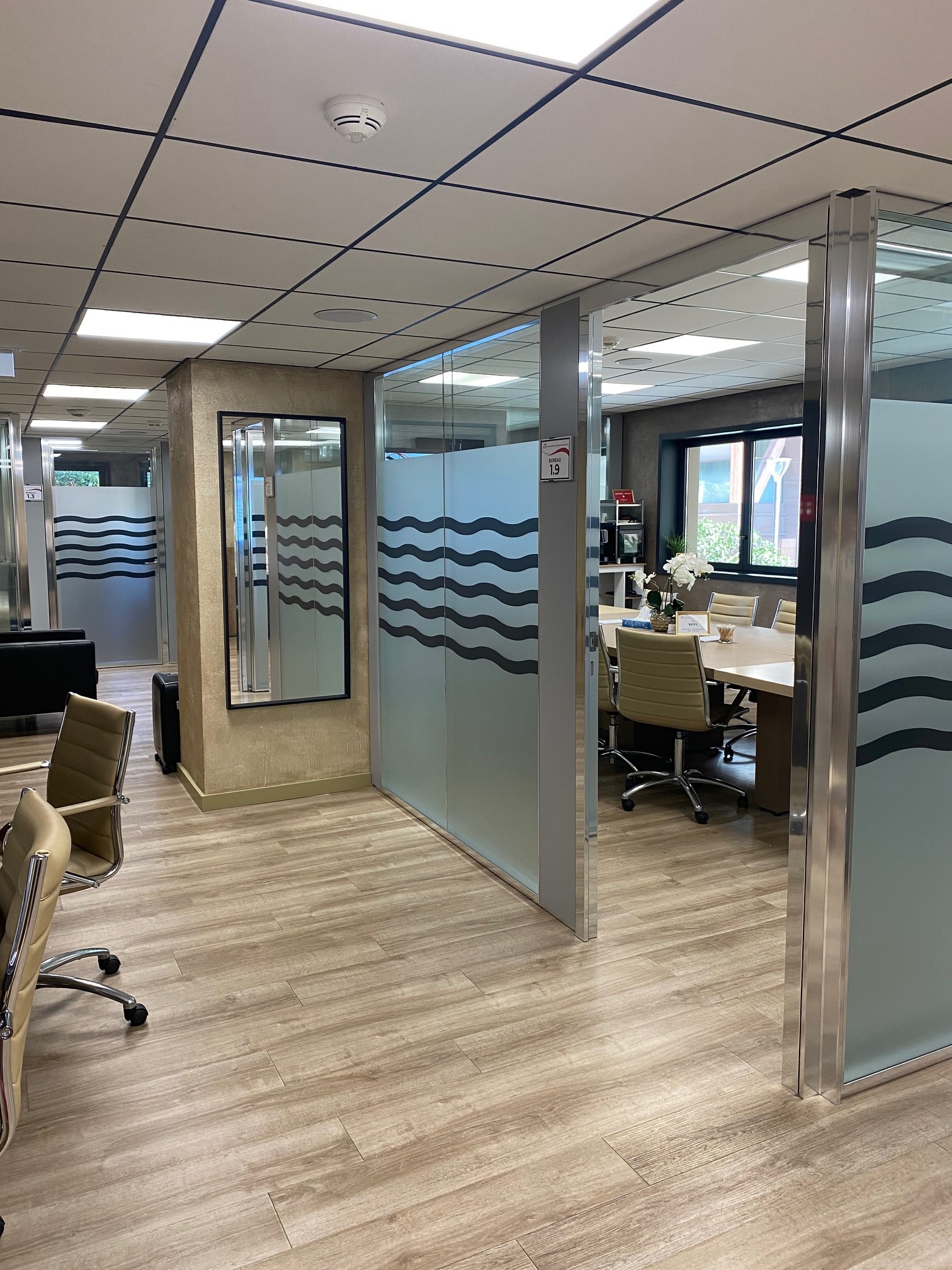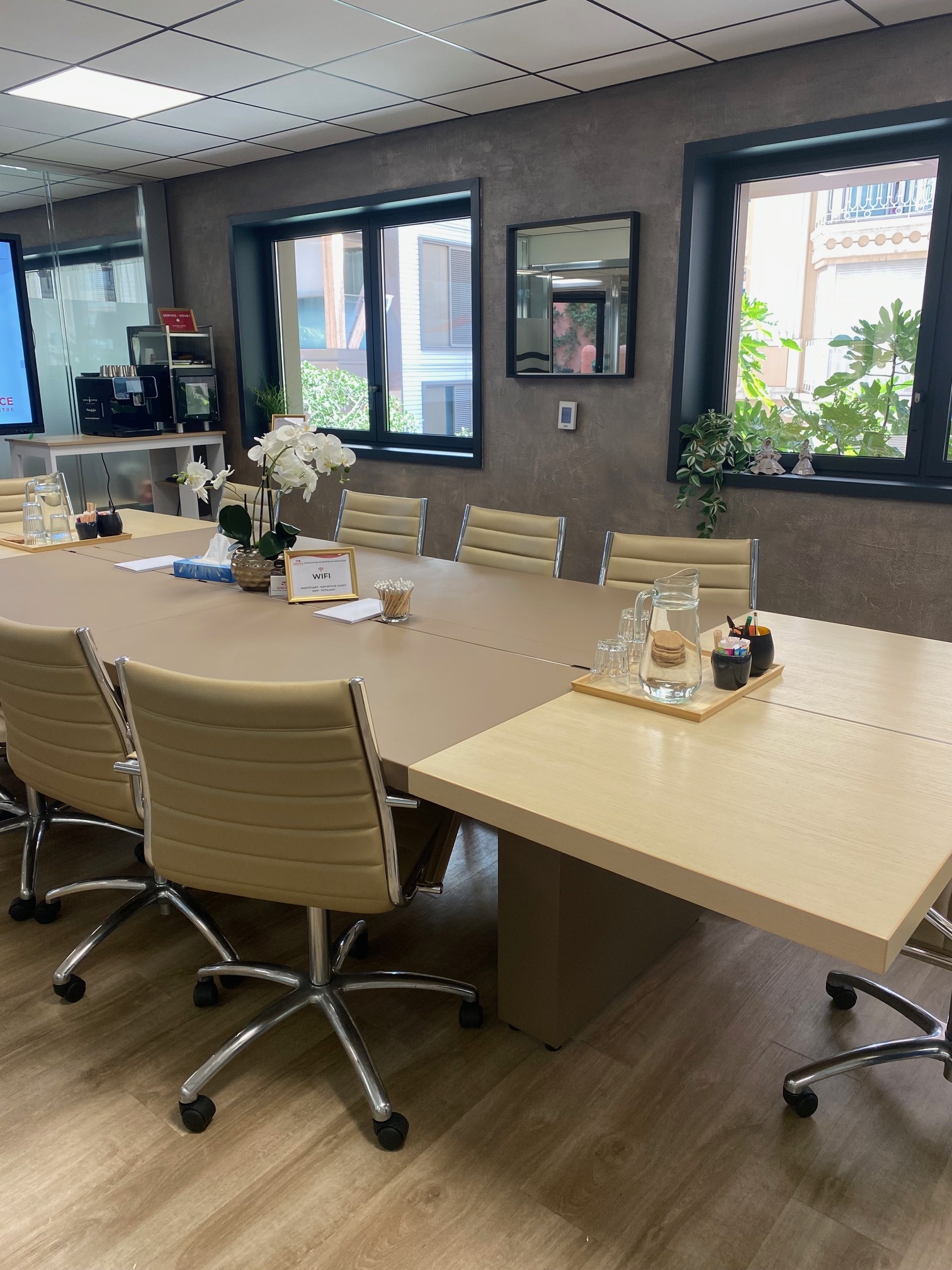 Réception du courrier, accueil physique et téléphonique, salle de réunion de 16 personnes accessible sur réservation, écran tactile, entretien quotidien, espace lounge, terrasse.