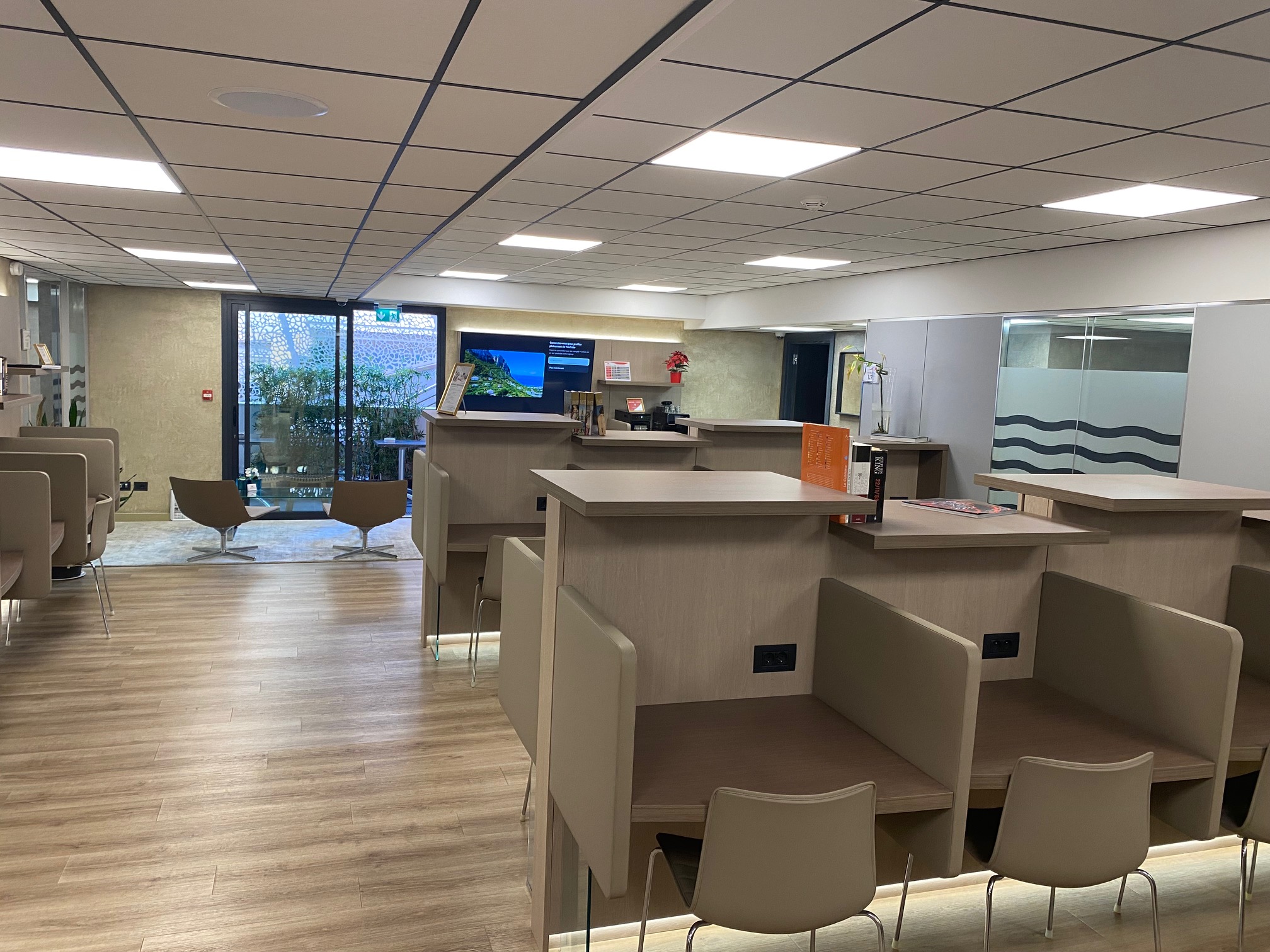 Réception du courrier, accueil physique et téléphonique, salle de réunion de 16 personnes accessible sur réservation, écran tactile, entretien quotidien, espace lounge, terrasse.