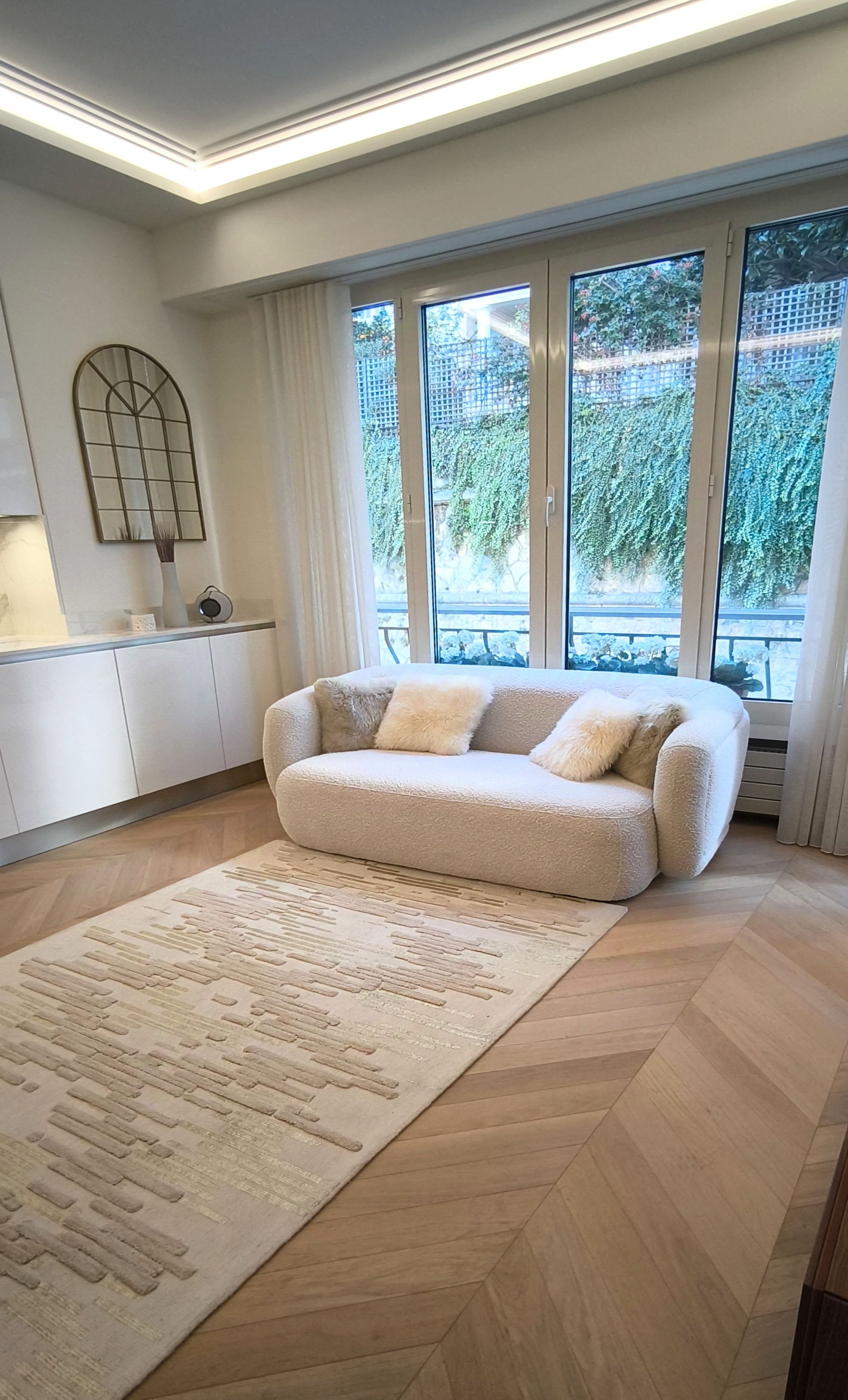 Récemment rénové avec des matériaux de grande qualité, il présente un parquet à chevrons, des corniches élégantes et une décoration raffinée. Vendu meublé, doté de la climatisation, il se trouve au sein d’une résidence de standing avec ascenseur et conciergerie.