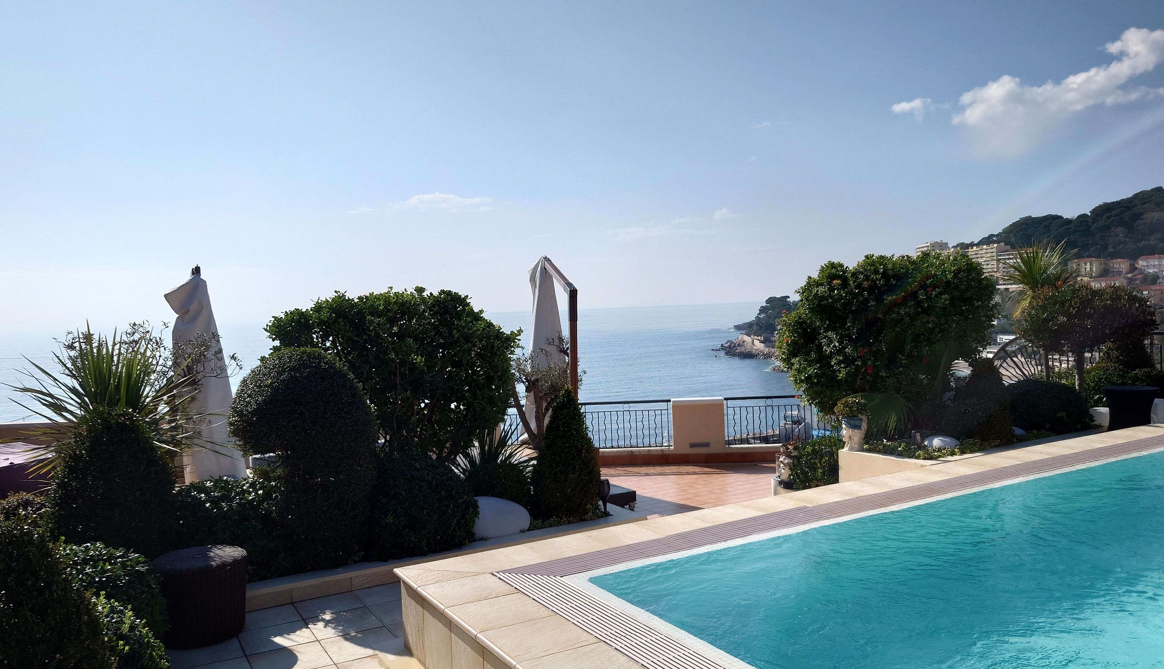 Situé dans une luxueuse résidence avec conciergerie 24h/24, salle de fitness, buanderie, exceptionnel appartement seul sur palier, composé d'un grand hall d'entrée, beau séjour sur terrasse/jardin, salle à manger sur loggia, belle cuisine entièrement équipée, office/buanderie, 5 chambres avec salle de bains et douche complètes en suite, 3 dressings, nombreux placards, toilette invités ; magnifique terrasse/jardin avec vue imprenable sur la mer, plage avec belle piscine;